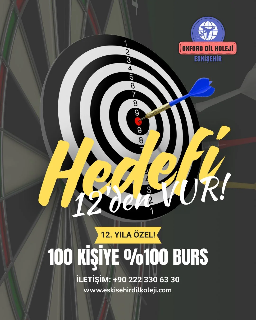Eskişehir Oxford Dİl Koleji 12.yılına özel tam 100 kişiye %100 burs verecektir. Bunun için yapılması gereken randevu alıp bursluluk sınavımıza katılmanız. Kampanya 100 kişi eğitim bursu alana kadar devam edecektir.